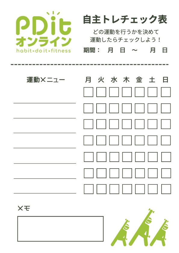 運動したらチェックを入れて自主トレを管理していきましょう。