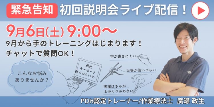 ※今月のみ9月6日(土)手の運動初回説明会を行います。